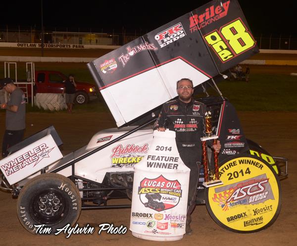 MUSKOGEE, Okla. (June 20, 2014) - A blown engine, a flip, and an overall terrible night the first three nights of Speedweek all turned around for Tony Bruce, Jr. on Friday night, coming from thirteenth to win at the Outlaw Motorsports Park with the Lucas Oil American Sprint Car Series presented by MAVTV American Real.