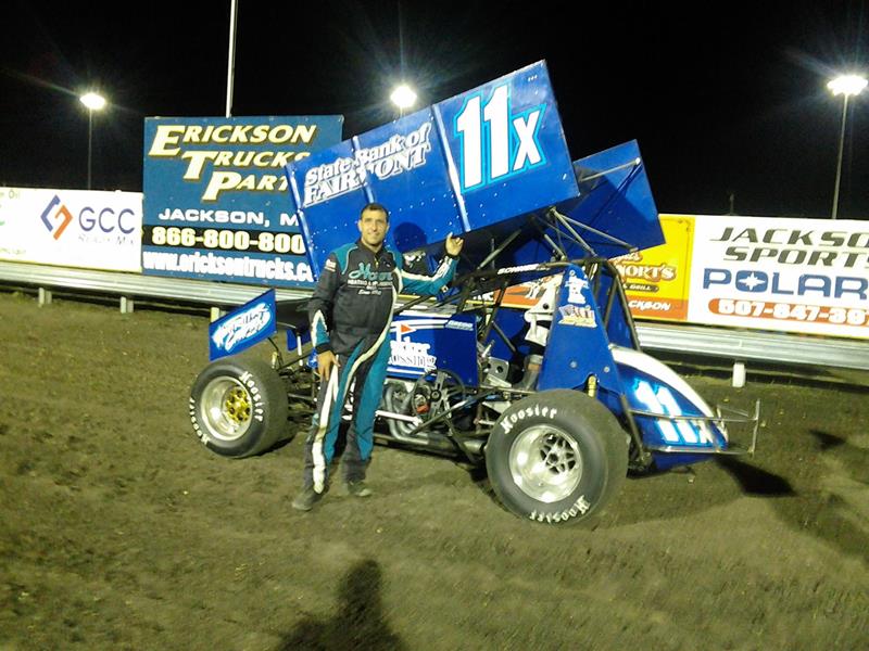 The double header at Butler County Speedway was doubly successful. Jason Martin captured the Sprint Series of Nebraska feature in his SCHNEE Chassis over the fellow EMI car of Trevor Grossenbacher. Jack Dover then claimed his third feature win in a row with the Nebraska 360 Sprint Series later the same evening. Jack paced Billy Alley and the pair of EAGLE cars finished 1-2 two nights in a row. After JDR's fourth win they traveled South to the Kansas State Fairgrounds and took yet another win, the fifth in six races, and kept the momentum rolling. Another Kansas victor was CJ Johnson with the NCRA at 81 Speedway.