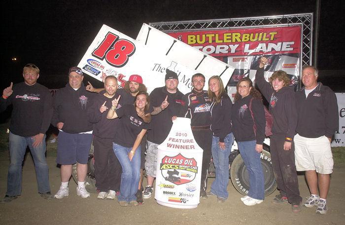 The Liberal, KS, racer/promoter battled past early leader Brian Brown on the tenth round in heavy traffic atop the ¼-mile gumbo clay oval and held the top spot the rest of the way to snare his first ASCS National win of the year aboard the Bruce Racing No. 18 Maxim.